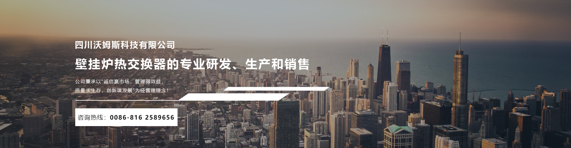 四川沃姆斯科技有限公司座落于環(huán)境優(yōu)美的中國(guó)科技城----四川省綿陽(yáng)市。 公司成立于2006年,是一家從事壁掛爐熱交換器的專業(yè)研發(fā)、生產(chǎn)和銷售的生產(chǎn)廠家。經(jīng)過9年發(fā)展,匯集了一批擁有行業(yè)領(lǐng)先技術(shù)和豐富應(yīng)用經(jīng)驗(yàn)的優(yōu)秀人才?,F(xiàn)代化的生產(chǎn)設(shè)備,先進(jìn)的生產(chǎn)技術(shù)工藝及各種精密的檢測(cè)設(shè)備,我們擁有年產(chǎn)量高達(dá)100萬臺(tái)的生產(chǎn)能力,能急客戶之所急,想客戶之所想,在市場(chǎng)中贏得客戶的一致認(rèn)可。 公司秉承以“誠(chéng)信贏市場(chǎng),管理得效益,質(zhì)量求生存,創(chuàng)新謀發(fā)展”為經(jīng)營(yíng)理理念!憑借高質(zhì)量的產(chǎn)品,完善的售后服務(wù),良好的信譽(yù),贏得市場(chǎng)! ...
